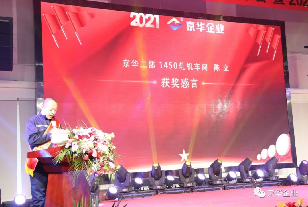 一分耕耘,一分收獲。2021年,一大批愛崗敬業(yè)、自強不息的京華企業(yè)優(yōu)秀員工用實際行動為公司的發(fā)展貢獻了鮮活的力量,也為廣大公司員工樹立了學習的榜樣。本次表彰大會共產(chǎn)生年度優(yōu)秀個人獎項90個、年度優(yōu)秀車間團體獎項4個,獲獎員工及班組代表依次走上領(lǐng)獎臺接受公司領(lǐng)導的鼓勵與嘉獎,公司領(lǐng)導為每位獲獎員工頒發(fā)了榮譽證書及精美獎品并合影留念。最后由優(yōu)秀員工代表京華二部1450軋機車間陳立及優(yōu)秀管理者代表兆建酸軋車間王育壯發(fā)表了精彩、感人的獲獎感言,公司全體員工也為獲獎同事獻上了最真誠的祝福和最熱烈的掌聲。