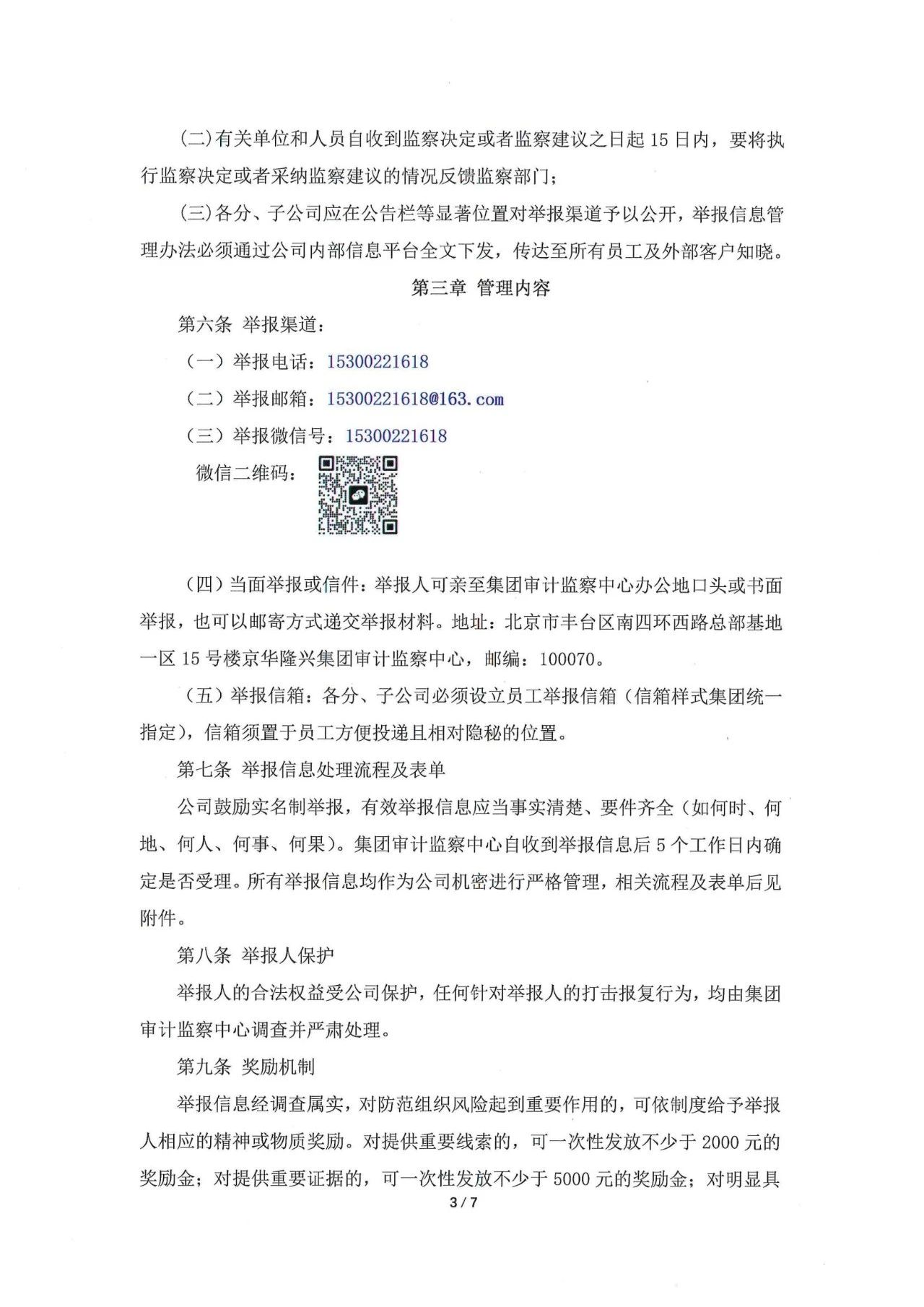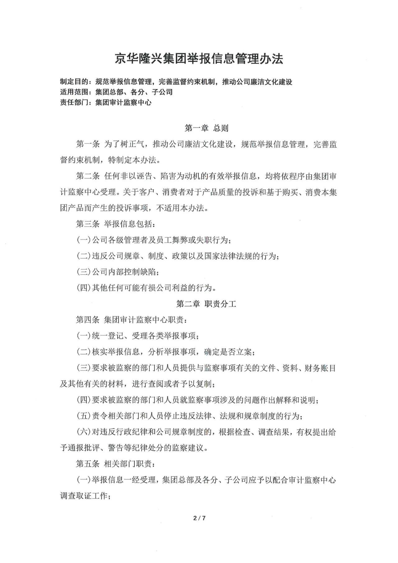 《京華隆興集團舉報信息管理辦法》