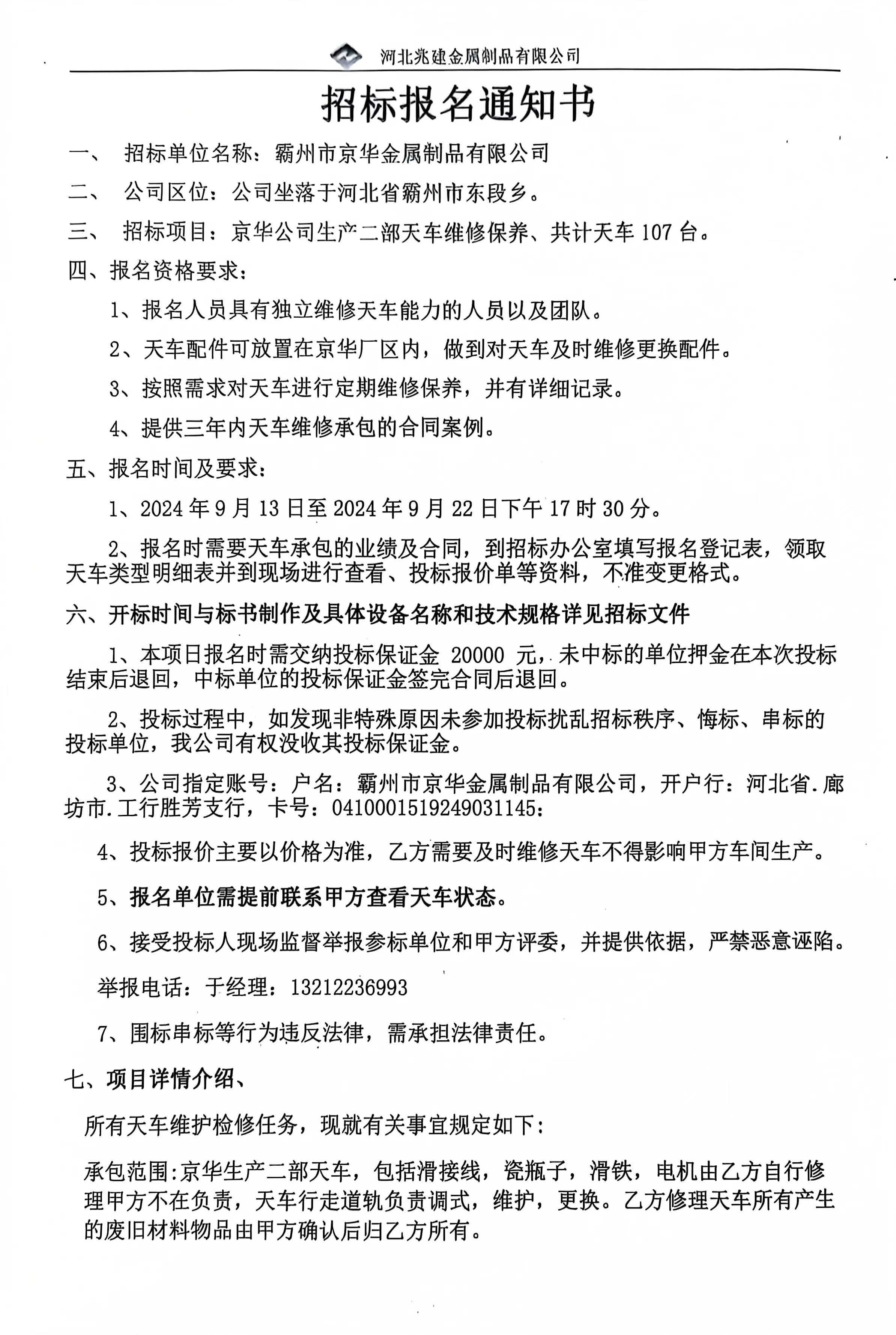 • 招標業(yè)主: 河北兆建金屬制品有限公司