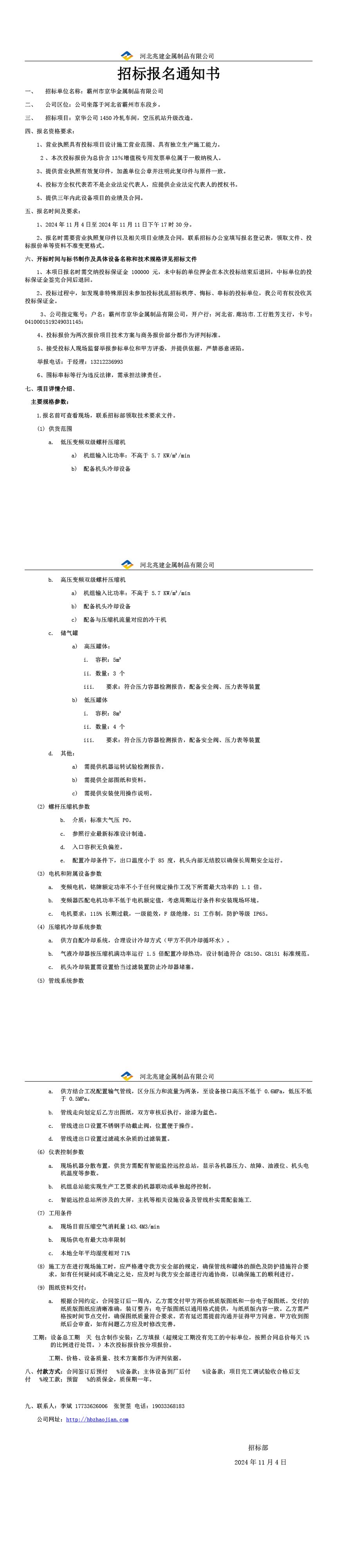 • 招標業(yè)主: 河北兆建金屬制品有限公司
